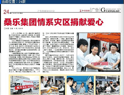 长江信息报:桑乐集团情系灾区捐献爱心