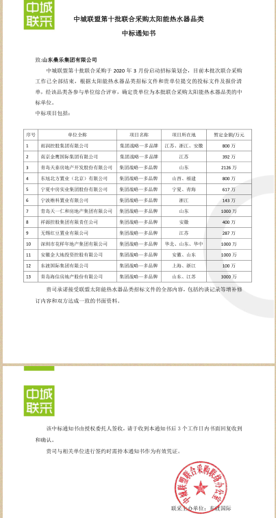 热烈祝贺桑乐集团中标“中城联盟”战略集采