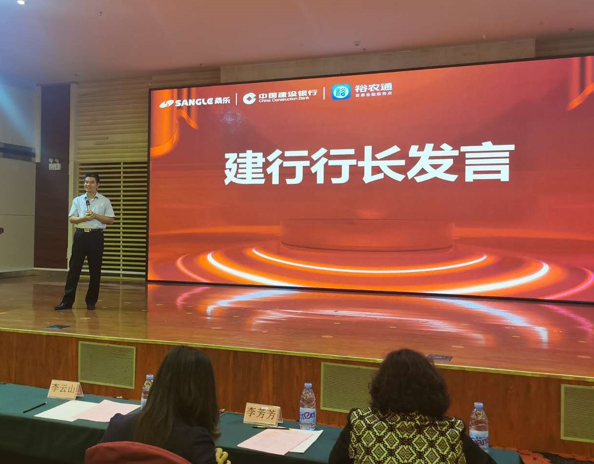 随后,在各方领导的共同见证下,桑乐集团与中国建设银行签署"裕农通"普惠战略合作签约,此次战略合作协议的签订,明确了双方友好互利的战略合作伙伴关系,为推动双方在各自事业领域的发展具有重大意义。