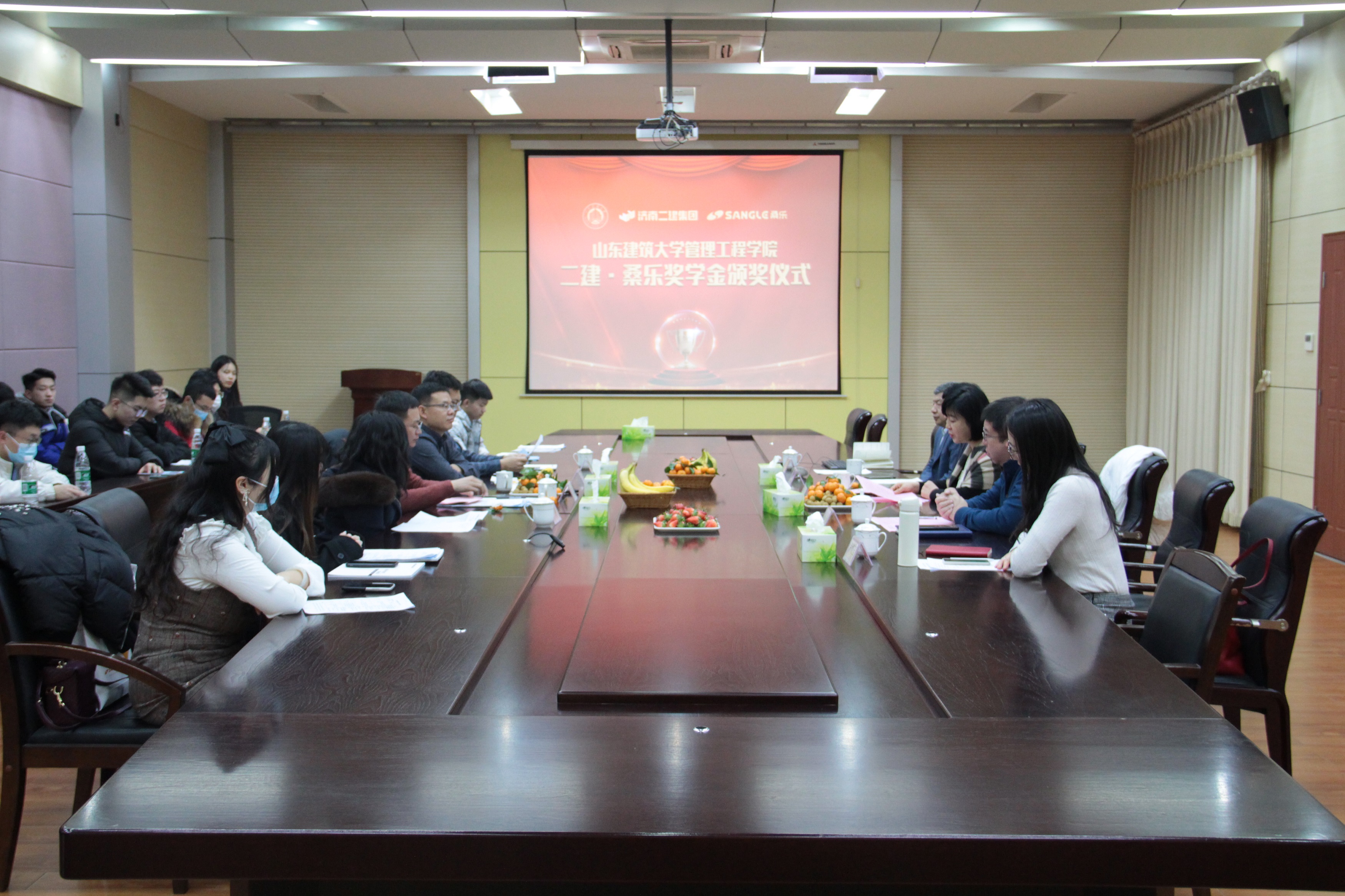 12月24日,济南二建集团、山东桑乐集团资助山东建筑大学管理工程学院优秀学生奖学金颁奖仪式在桑乐集团总部举行。山东建筑大学管理工程学院院长王德东、团委书记张之稳以及建大教师、学生30余名参加仪式。二建集团党委书记、副董事长、桑乐集团董事杨莹、济南二建集团副总经理吴永平、桑乐集团常务副总冯磊等集团领导接待参会。