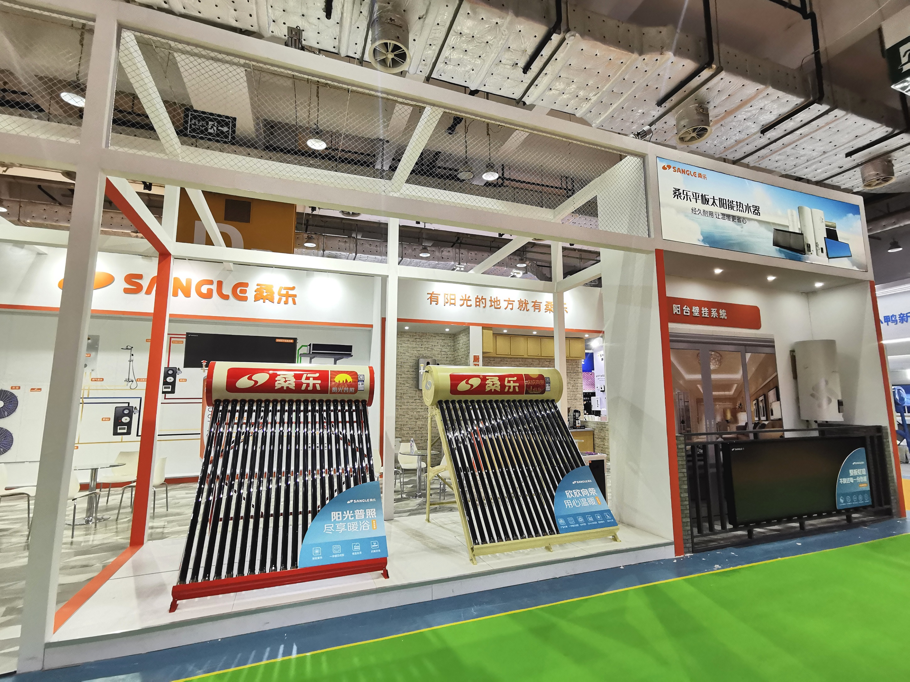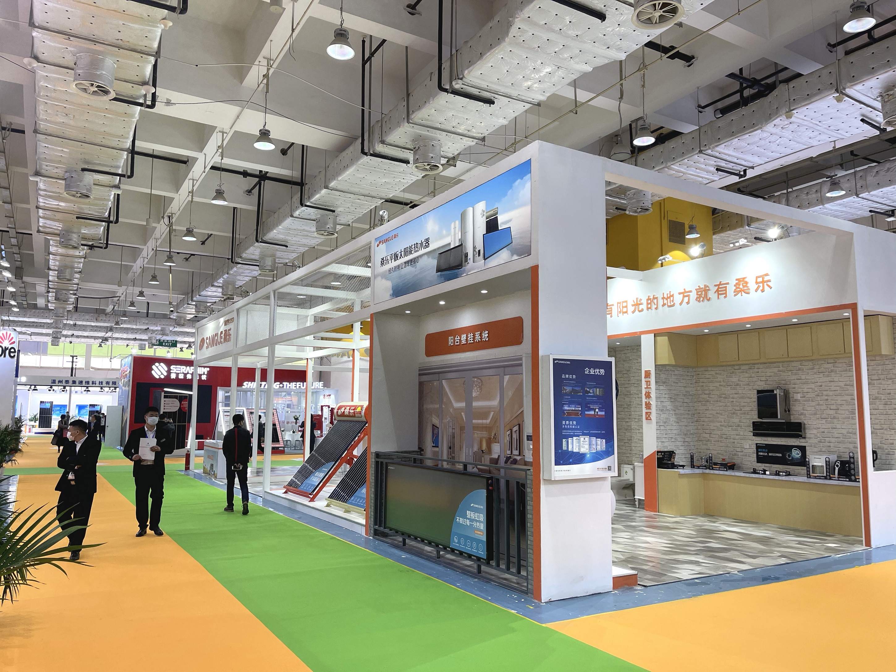 桑乐集团结合本次大会“发展绿色能源,助力动能转换”主题,以太阳能+多能互补综合能源系统为核心,现场集中展示了平板太阳能热水器、真空管太阳能热水器、速热热水器、电热水器、燃气热水器、厨房电器、生活小电等产品。展会期间,桑乐展区吸引了许多参观者驻足观看。