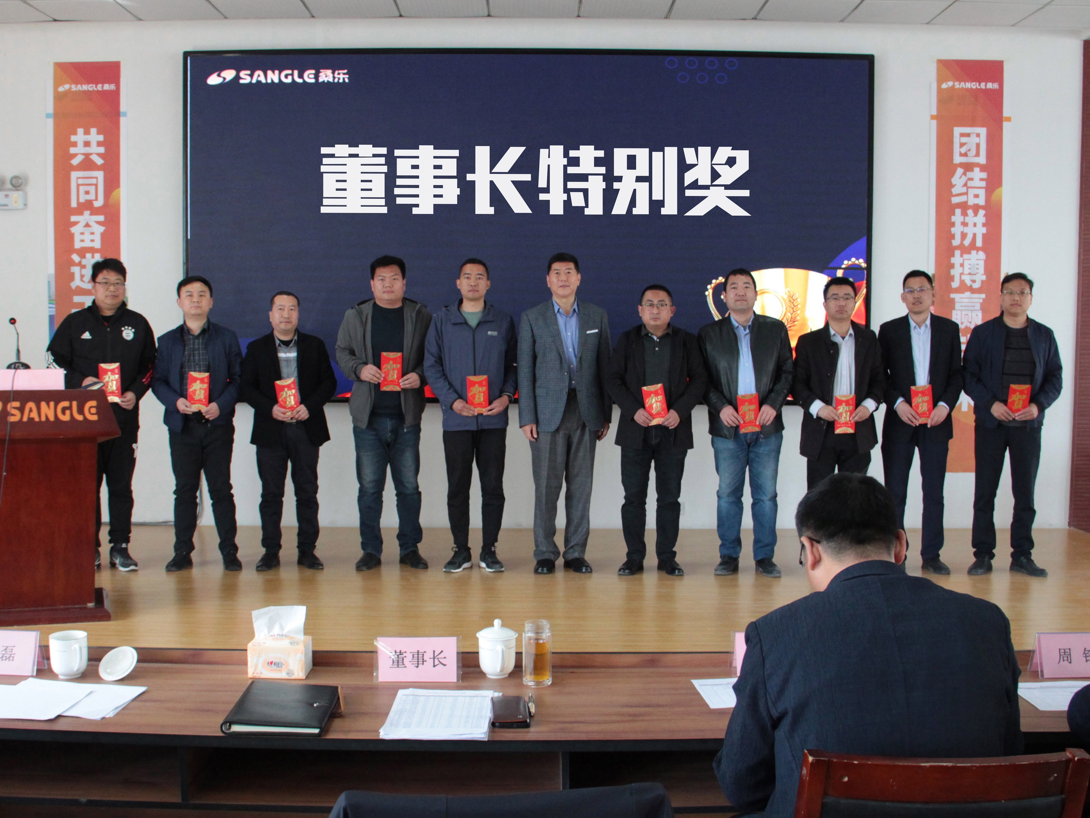 会上,董事长为获得春雷季“董事长特别奖”的销售人员颁发奖励,勉励大家再接再厉,力争二季度取得更优异的业绩!