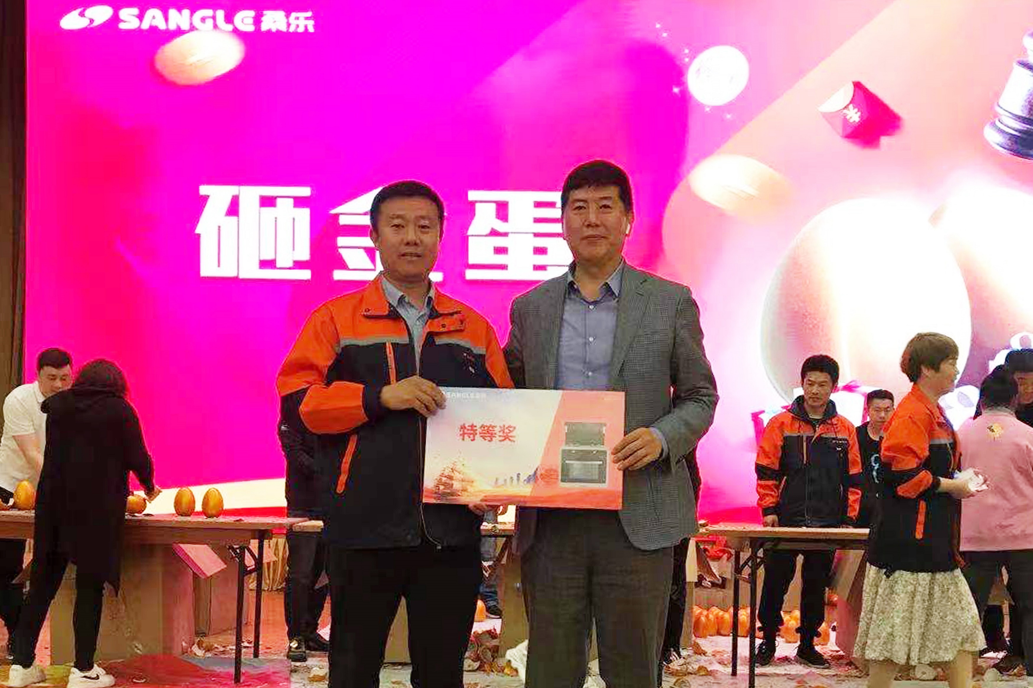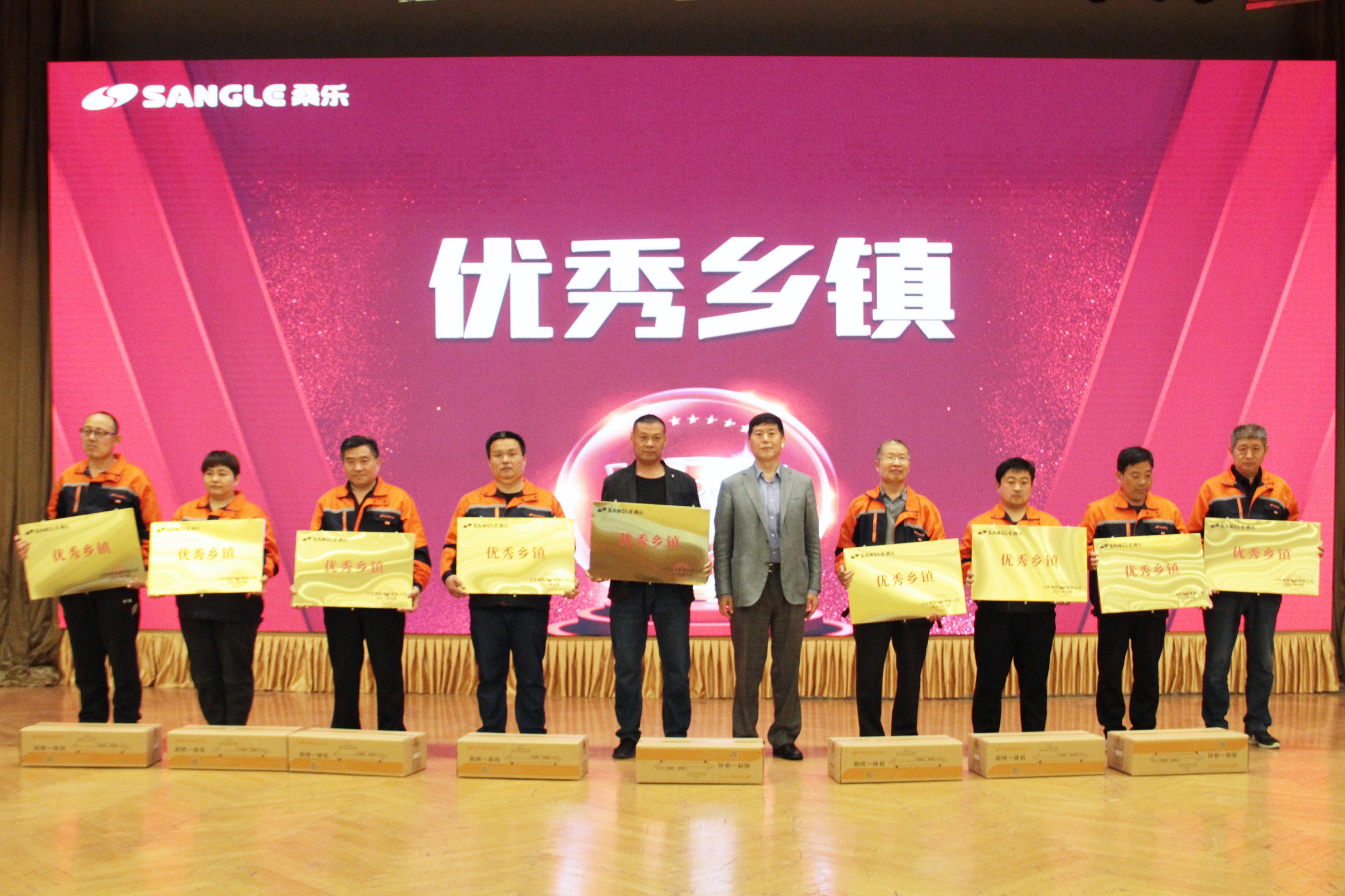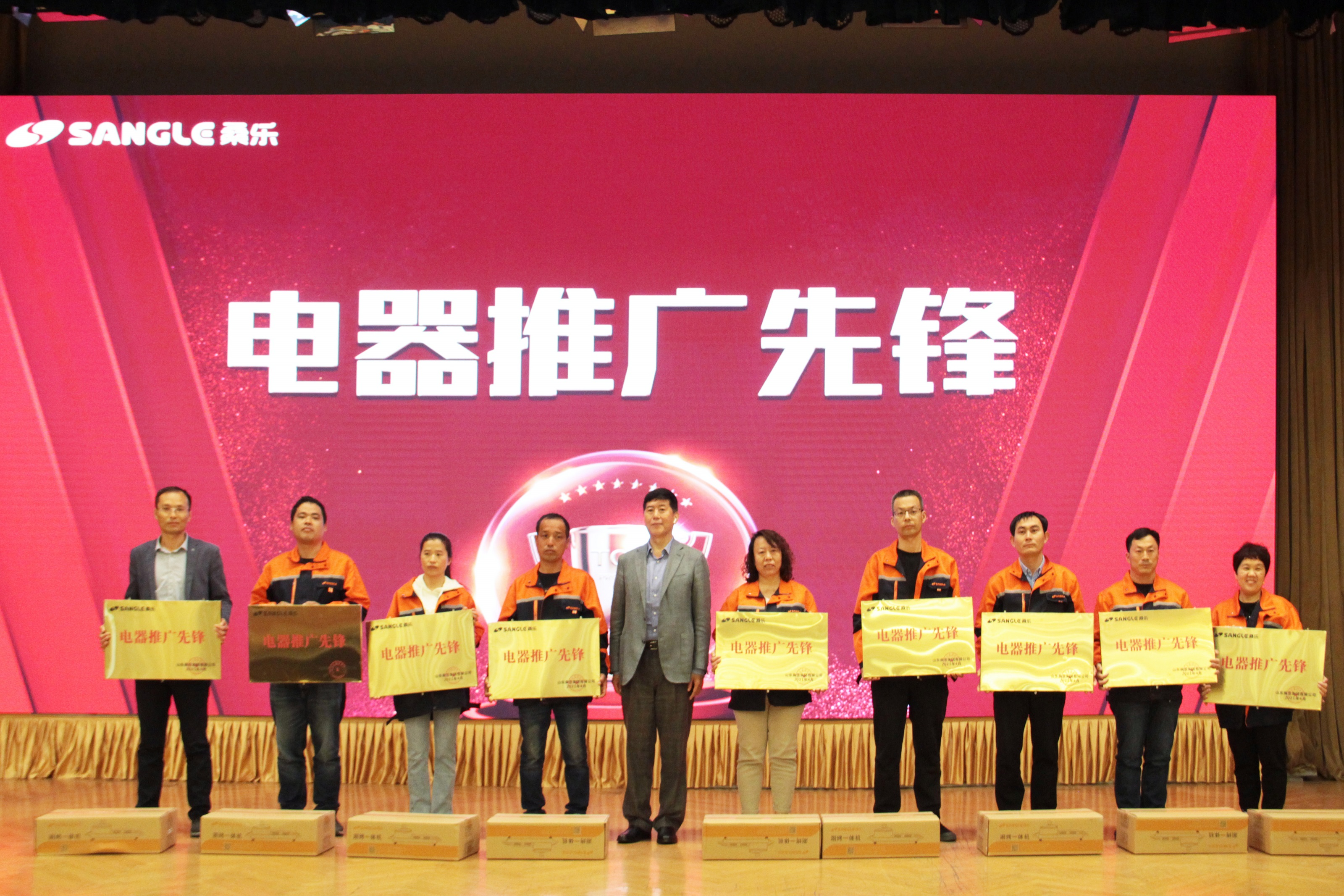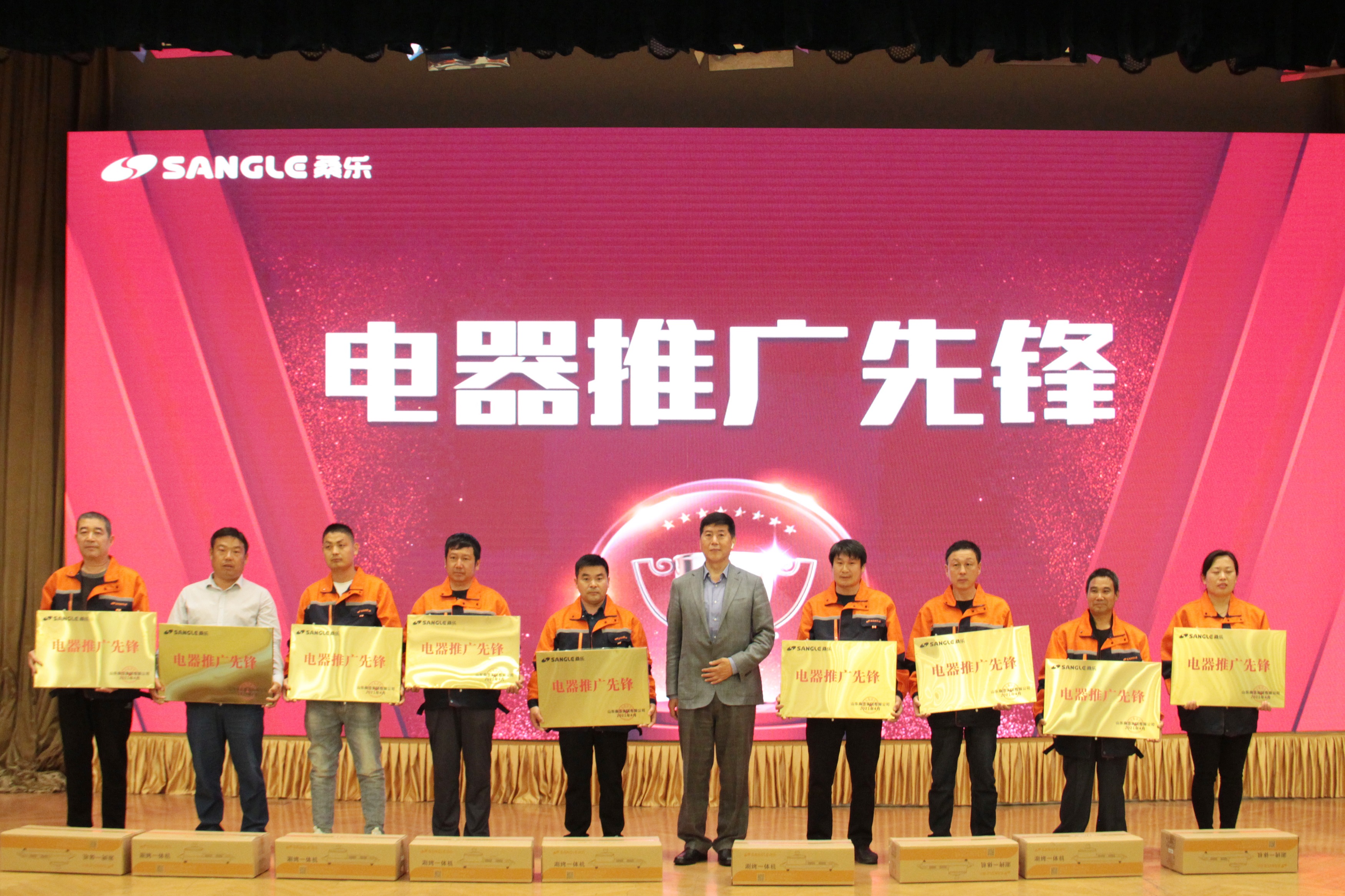 桑乐品牌的成长与发展,离不开并肩作战的经销商伙伴们。董事长为业绩突出的经销商伙伴分别颁发了优秀乡镇和电器推广先锋荣誉奖项,以此树立榜样作用,激发桑乐人事业激情。