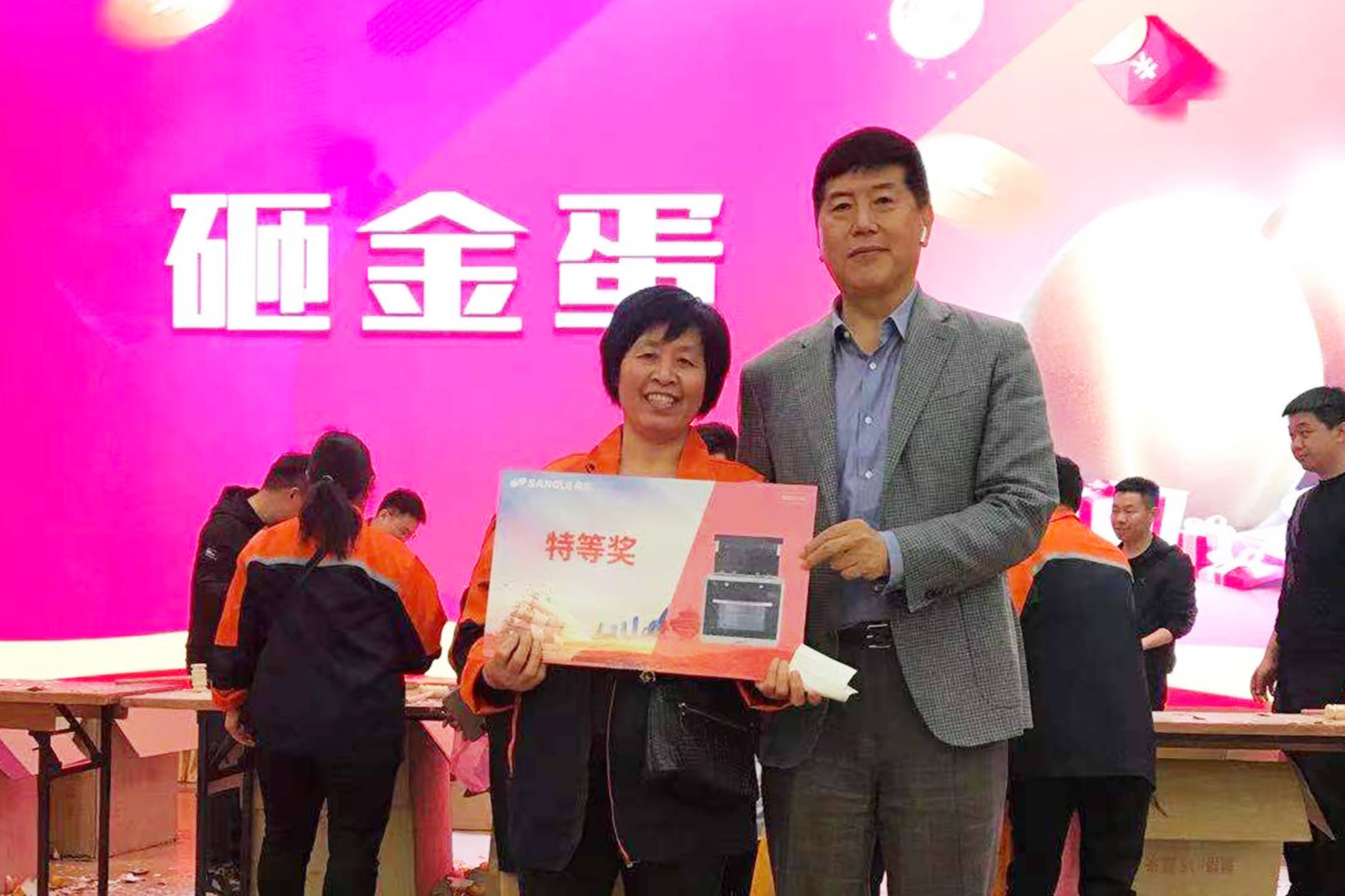 会议最后,迎来了最激动人心的砸金蛋抽大奖环节,高端集成灶、速热热水器、智能烟机等多份幸运大奖逐一揭晓。