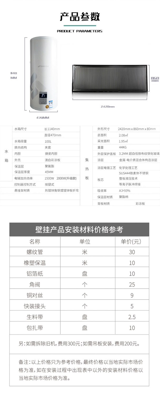 - 商品名称:高温型全流道 升级款 家用阳台壁挂太阳能热水器